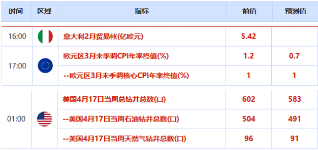 本交易日主要关注穆迪公布对英国主权信用评级的评估结果,美国4月17日当周钻井数据。