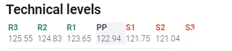 根据每日图表,货币对有望测试121.00的心理支撑。如果该货币对获得高于周一高点124.12的接受,则看跌偏见将失效。