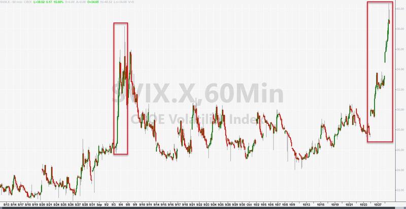 跟着各种财物商场的兜售加快,财物对冲本钱正在急剧上升。VIX指数(又称惊惧指数,用来衡量标普500指数期权未来30天的动摇程度)自6月以来初次打破40点。