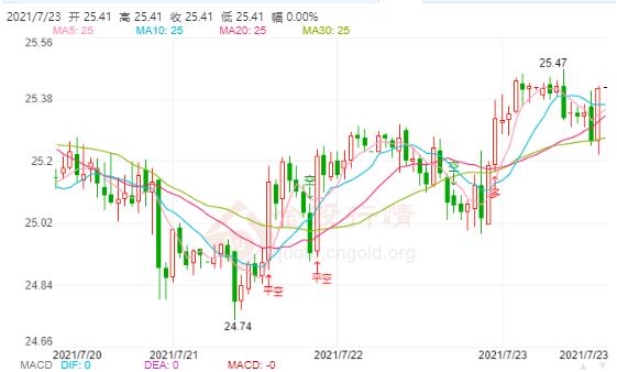 原标题:国际白银能否回到25美元上方周三(7月28日)本交易日国际白银日内震荡小幅上涨,今日开盘报24 68美元 盎司,最高触及24 85美元 盎司,最低触及2