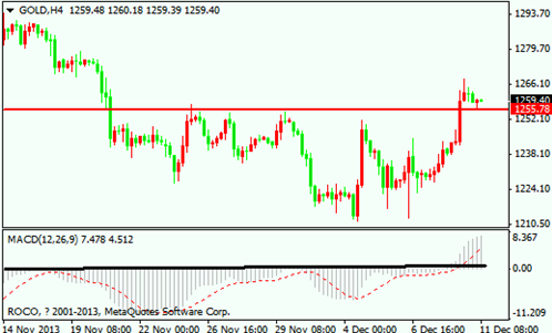 技术分析:从4小时图的走势去看,昨天国际黄金的上涨突破了1255的阻力价位,1255作为近期上方价格成交的密集区,也作为前一次行情反弹的高点价位,被突破以后意味着后市国际金价将会有进一步上涨的空间。
