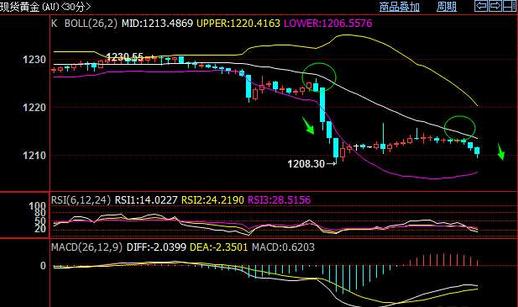 凌晨结束QE之后直接出现一波跌势,黄金价格从1223直接下跌至1208;早间黄金的价格同样出现一波小幅反弹,最高至1216一线。午间伙同白银一起再次下跌,目前最低跌至1205。