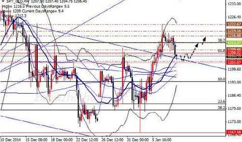 此外美联储12月会议纪要也进一步彰显其2015年升息的信心,黄金价格结束此前的三日连涨幷一度跌至1210美元下方。不过油价暴跌以及欧洲的动荡局势加剧了市场的避险情绪,为黄金价格提供了支撑。