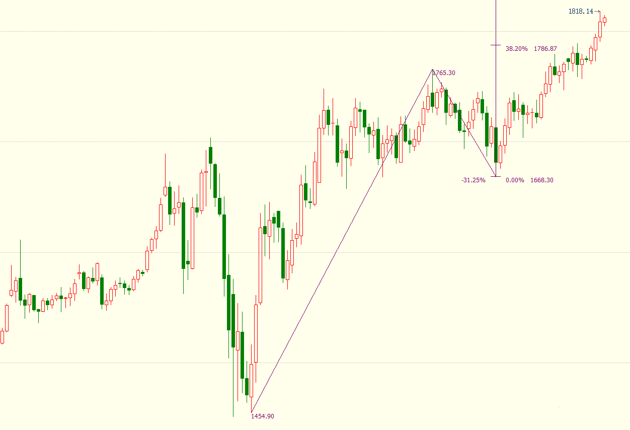 分析师认为金价跌穿本轮涨势1527至1795的23.6%回调位1732,继续下跌将测试38.2%回调位1693附近,预计在1700关口将出现争夺。