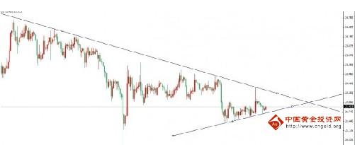 昨日黄金凌晨于低位横盘震荡,大有低位强势整固之势,预计今日将有突破冲高的动能。