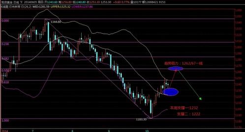 金鼎黄金网10月20日讯,黄金价格上周延续反弹势头,开盘1223.4美元,最高1249.1,收盘1237.7,尽管在日线布林中轨压制下,上周四五出现小幅回吐整理,但并没影响周线最终的收强,守下14美金涨幅,自10月8日在1183止跌后,已录得第二周上涨。