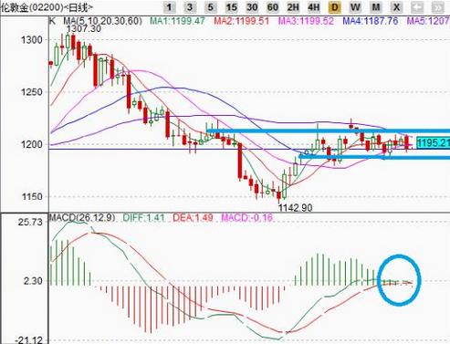 从日线来看,布林带已经缩口,上方60日均线的向下压制,而下方的30日均线向上的支撑,也暂时确定了今天的波动区间1188-1206。