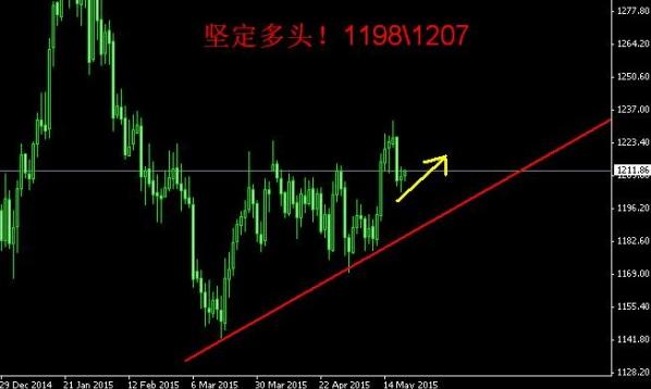 目前行情,两种明确观点:第一,国际金价止步于1200-1205之上,周二的大幅下挫就是完美的回调,后续会以一种震荡上行的走势逐步走高,再次向上发起攻击,问鼎本周高点上方区间。