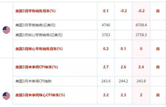 有分析指出,此次公布的美国3月CPI数据明显不及预期,3月零售销售基本符合预期,这表明此前本周早些时候耶伦对美国通胀的谨慎态度是有道理的,此次欠佳的通胀数据料将令美联储在进行加息决策的时候更趋谨慎,进而打压市场对美联储加息前景的预期,利空美元,利好非美货币和黄金。