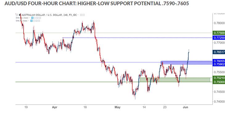 美元走弱为澳元和纽元带来了反弹契机,随着逐步深入6月,澳元/美元和纽元/美元预计将巩固涨势。DailyFX分析师为投资者带来本周的三大货币对预期,其中一个是基于美元回归强势,另外两个则是基于美元深度回撤。