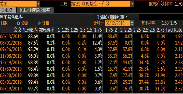 市场普遍一致预期6月将加息25个加点,联邦基金利率本周将提高至1.75%至2%的区间范围,利率水平将与2001年底至2004年相当。