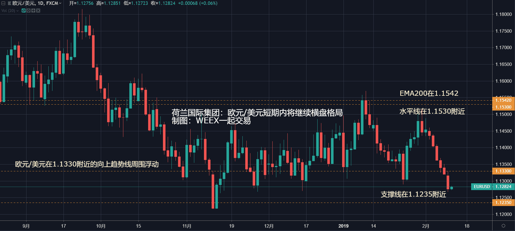 去年年末以来,欧元/美元一直呈现横盘格局,未出现明显行情。截止至2月12日11点33分,欧元/美元报价1.12824。