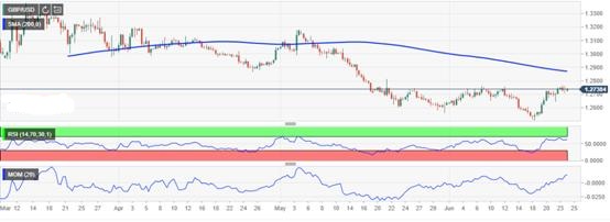 目前英镑徘徊在关键阻力1.2750以及4小时图上的200期均线附近,这是一个积极的信号。