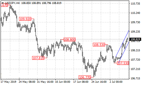 美元/日元保持在4小时图中的上升通道内,仍然处于自107.53的上升趋势。只要美元/日元守住通道支撑,那么汇价预计将继续上升走势,下一目标位将在109.50区域。