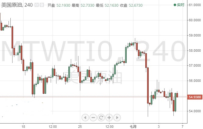 文章指出,美国原油一度触及54.00-53.80,之后止跌再次反弹回55.00一线,从结果说仍在围绕55.00进行争夺,宜继续关注此线表现。倾向继续关注55.00一线争夺,下方参考支撑53.80-54.00,上方阻力56.00-55.80。