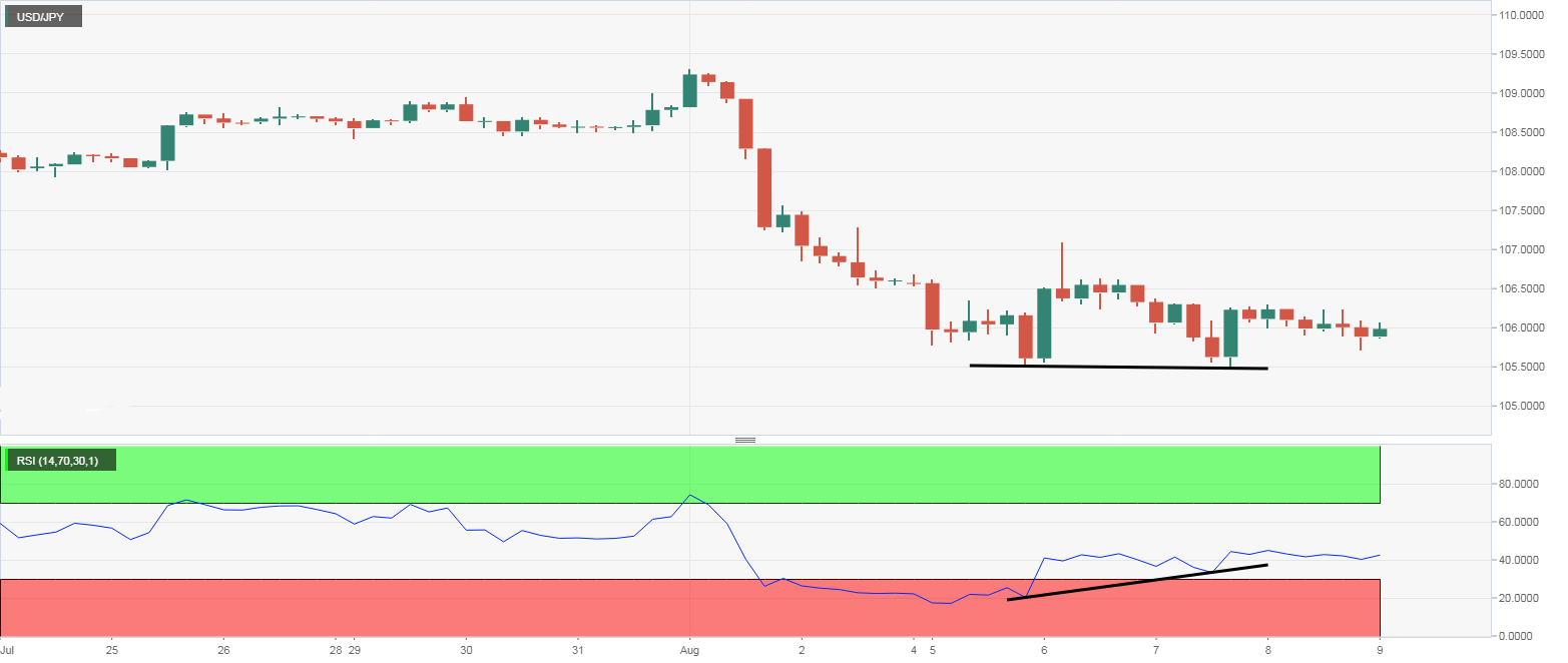 4小时图上看,相对强弱指标(RSI)呈现看涨背离,预计本交易日美元/日元将进一步涨至106.30/50区域。