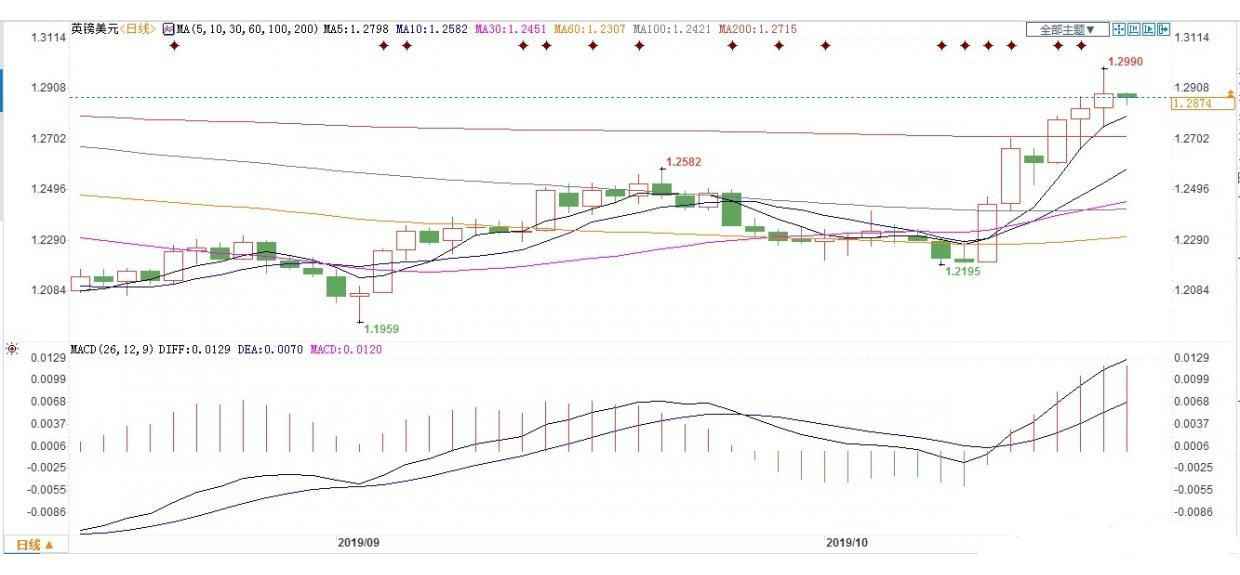 周四(10月17日)英国央行副行长戴夫·拉姆斯登称,如果英国首相约翰逊的脱欧协议能够被议会认可,英国顺利脱欧,那么英国央行就有可能提高利率。协议脱欧料定会提振英镑,如果英国央行在脱欧后加息,将进一步促进英镑走高。