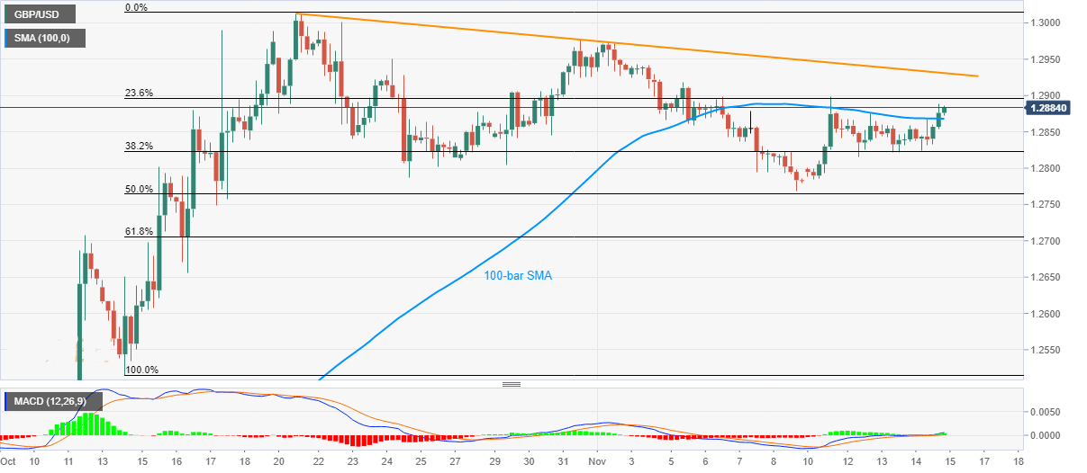 周五(11月15日)亚市午盘,英镑/美元位于1.2880附近水平徘徊。日内汇价继续展开震荡上行,但触及1.2886高点后略微有所回落。
