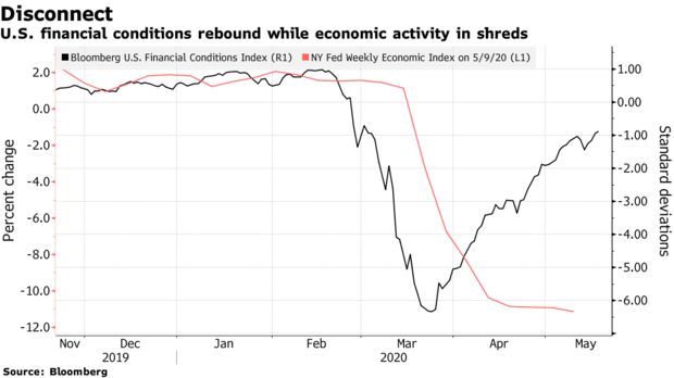 据彭博社报道,美国金融状况正以至少1990年以来最快的速度变宽松,这与越来越多投资者对经济V型复苏前景的怀疑形成了对比。