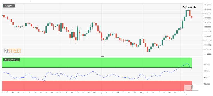 根据每日图表,货币对有望测试121.00的心理支撑。如果该货币对获得高于周一高点124.12的接受,则看跌偏见将失效。