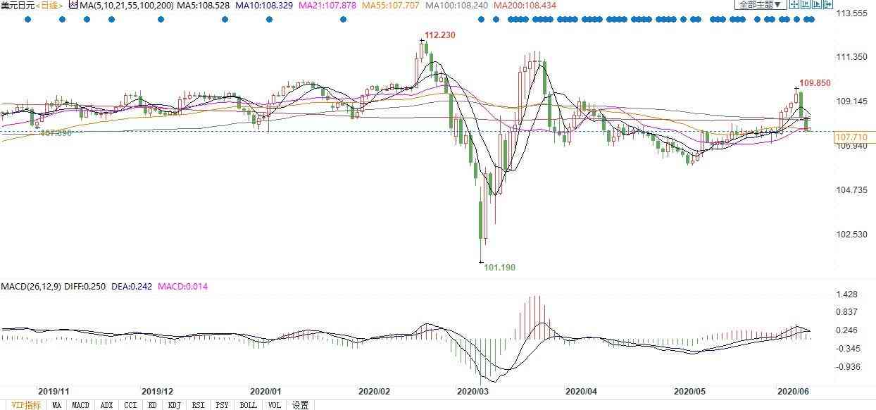 北京时间6月10日11:10,美元兑日元报107.69/71。