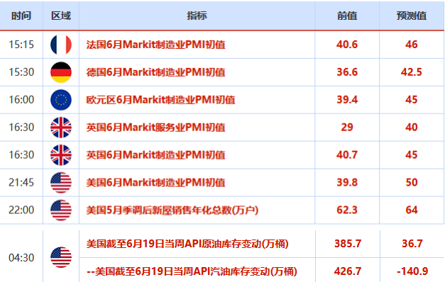 本交易日主要关注欧美多国PMI,此外关注美联储官员及英国央行官员讲话。