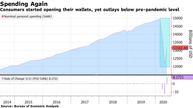 美国5月个人支出月率创纪录新高 但消费完全复苏尚需时间