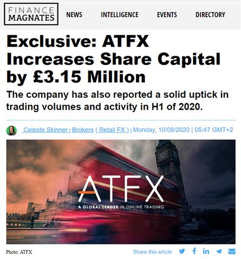 当地时间8月10日,全球知名媒体FINANCE MAGNATES发布消息称,英国差价合约经纪商ATFX因业务需要增加的315万英镑股本已获英国公司登记局批准。