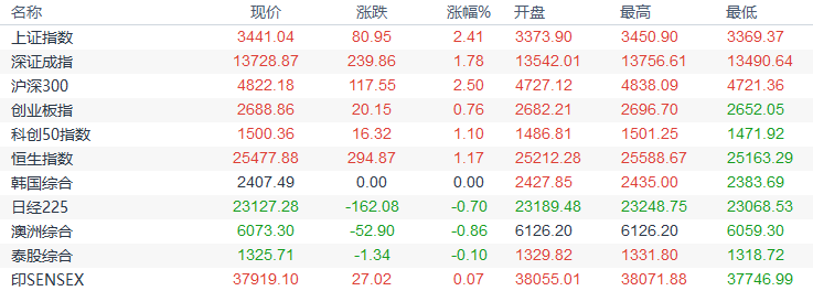 亚洲股市行情一览