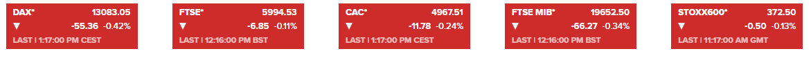 市场情绪整体偏谨慎 欧洲主要股指普遍温和下跌