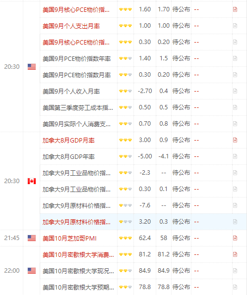 原标题:今日财经数据前瞻:关注美国9月PCE物价指数年率