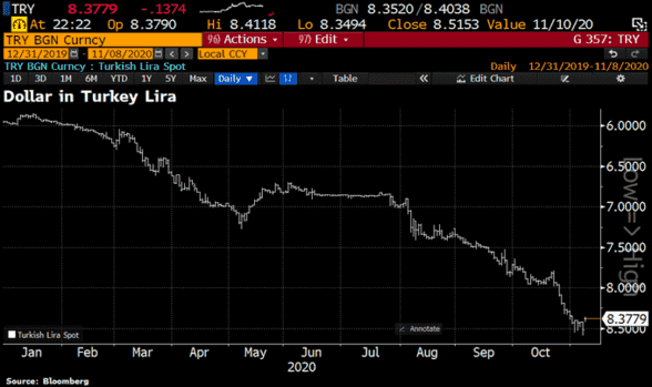 新任行长Naci Agbal常常对干涉商场的方针提出批判。他的录用或许意味着该国的加息时代即将到来,但这取决于他在使用方针工具方面争取到的独立性程度。
