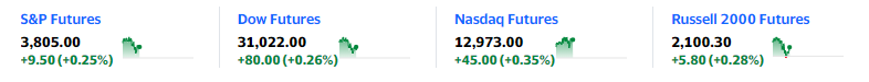 欧美股市:欧洲股市今日高开,维持盘中涨幅。截至发稿时,欧洲斯托克600指数、英国富时100指数、法国CAC40指数、德国DAX30指数和意大利富时MIB指数分别上涨0.5%,持平,分别上涨0.4%、0.7%和0.4%。美国股指期货上涨如下图所示: