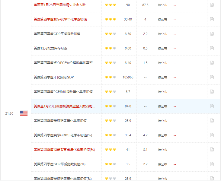 原标题:今日财经数据前瞻:关注美国第四季度实际GDP年化季率初值